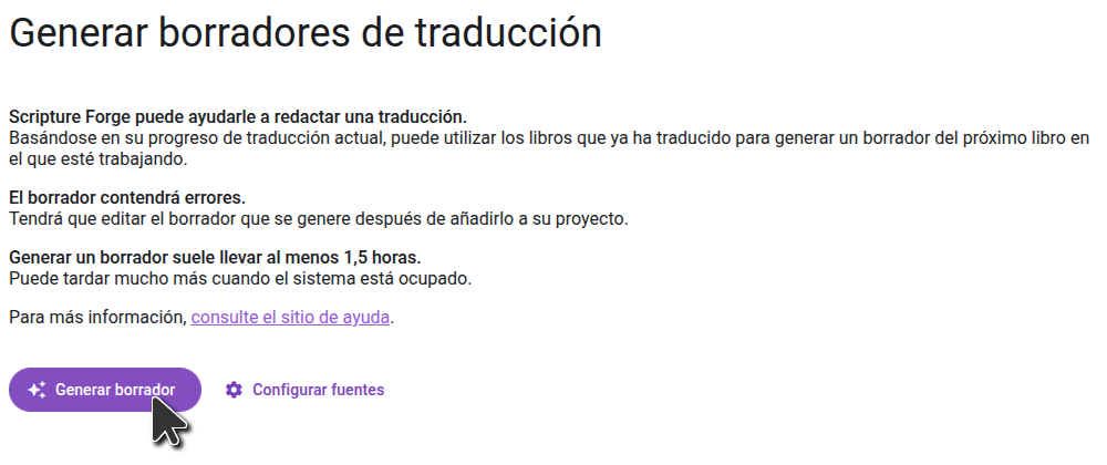 Una vez activado el proyecto y configuradas las fuentes, haga clic en el botón Generar borrador para empezar: