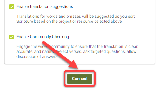 Jika Anda belum pernah menghubungkan proyek ke Scripture Forge: