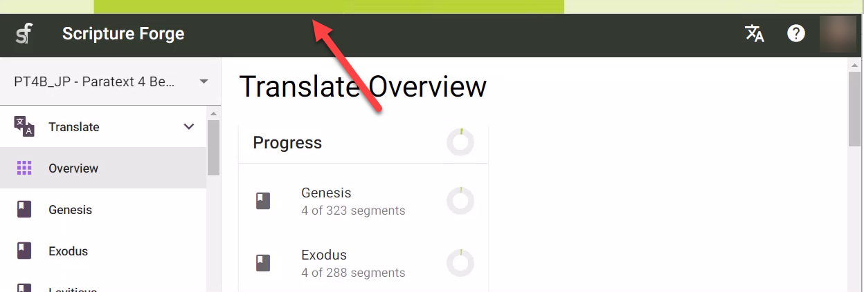Untuk melihat daftar proyek yang dapat Anda akses di Paratext, klik ikon Scripture Forge di sebelah kiri atas layar.