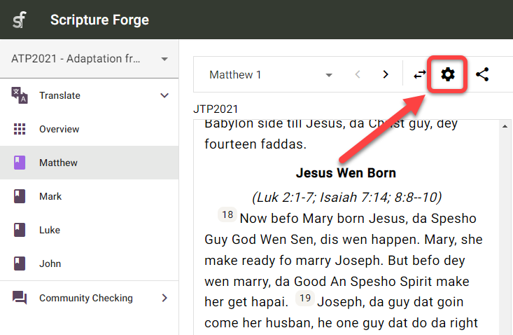 - Translation suggestions are based on Scripture Forge analyzing verses in the target project that have already been translated from the source project.
